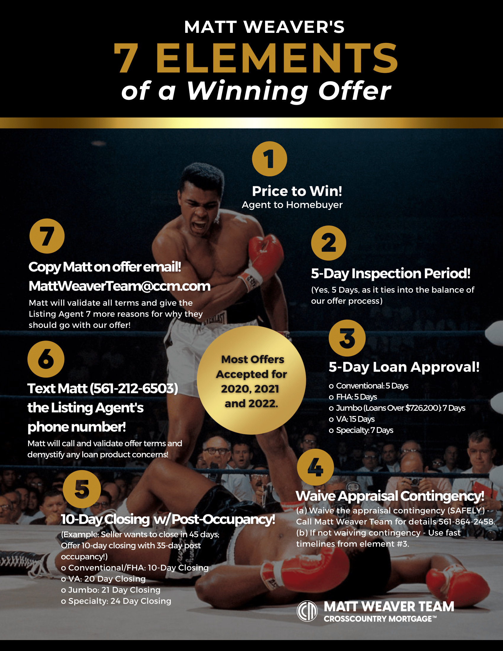 Use our "7 Elements of a Winning Offer" to win 9 out of 10 times in any multiple offer situation.